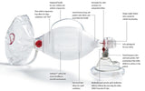 Adult and pediatric sizes have a soft splashguard for user safety and all pediatric and infant sizes are equipped with an override vale system that helps prevent giving to high pressure into the patient’s lungs.