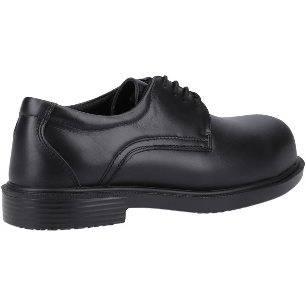 These smart looking safety shoes also have a durable full-grain leather upper, breathable mesh lining and padded collar. The Ortholite insole delivers ultimate cushioning for further comfort. Making them ideal for station staff, security and construction site managers. Tested and certified to European Standard EN ISO 20345:2011 SB E SRC.