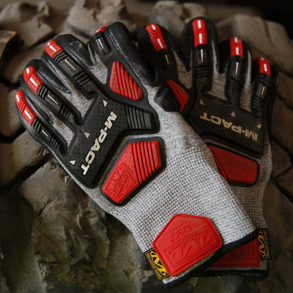 M-Pact® Knit CR5A5 cut gloves protect working hands with a blend of high-tenacity fibers to provide EN 388: 2003 level 5 & ANSI A5 cut resistance throughout the entire glove. Comfortable 13-gauge machine knit shell conforms to your hands with anatomically designed Thermoplastic Rubber (TPR) to protect your knuckles, metacarpals and fingers from common impact and pinching injuries while you work. M-Pact Knit CR5A5 work gloves feature double dipped sandy nitrile palms with D3O® padding to help dissipate impact and vibration when you’re in full swing on the job.