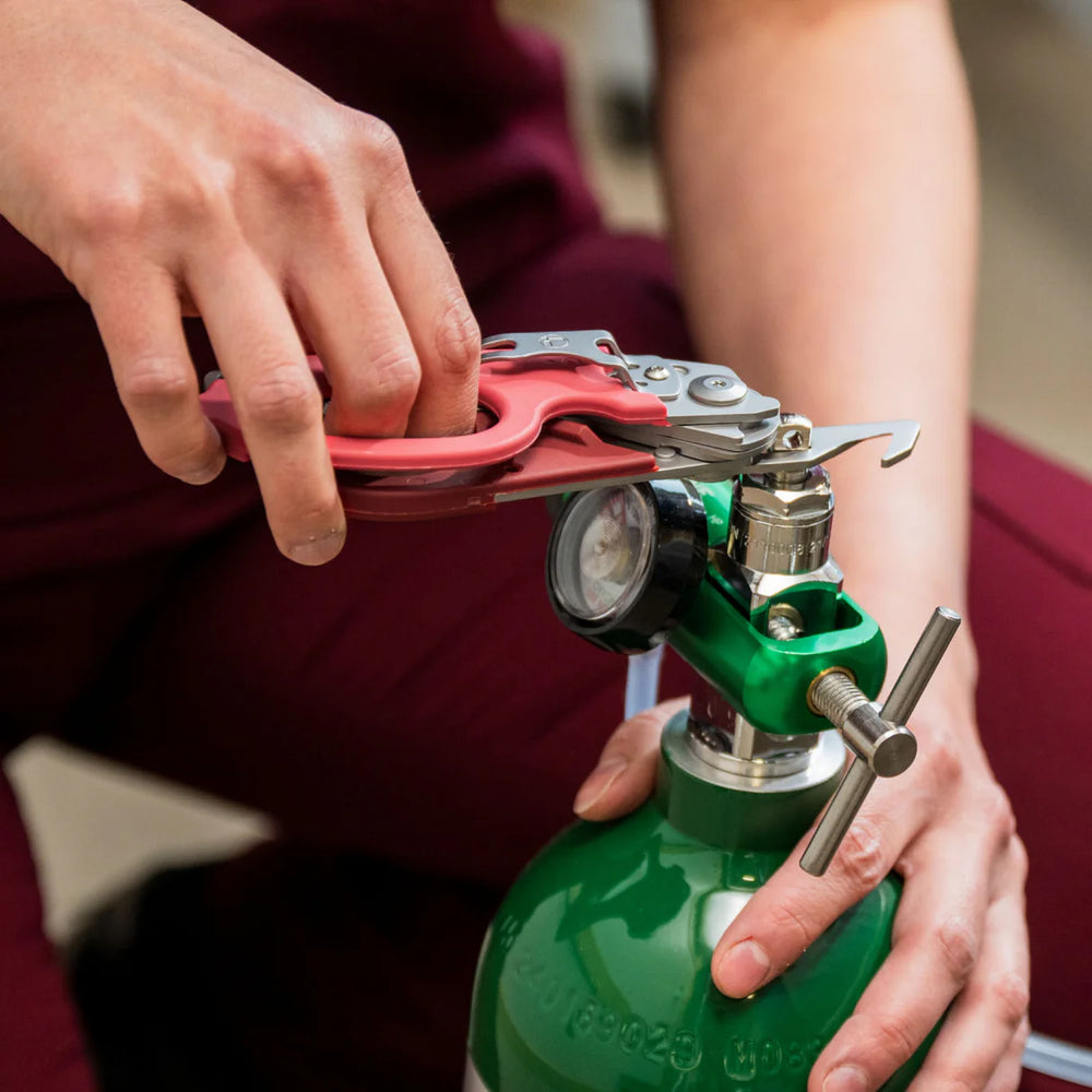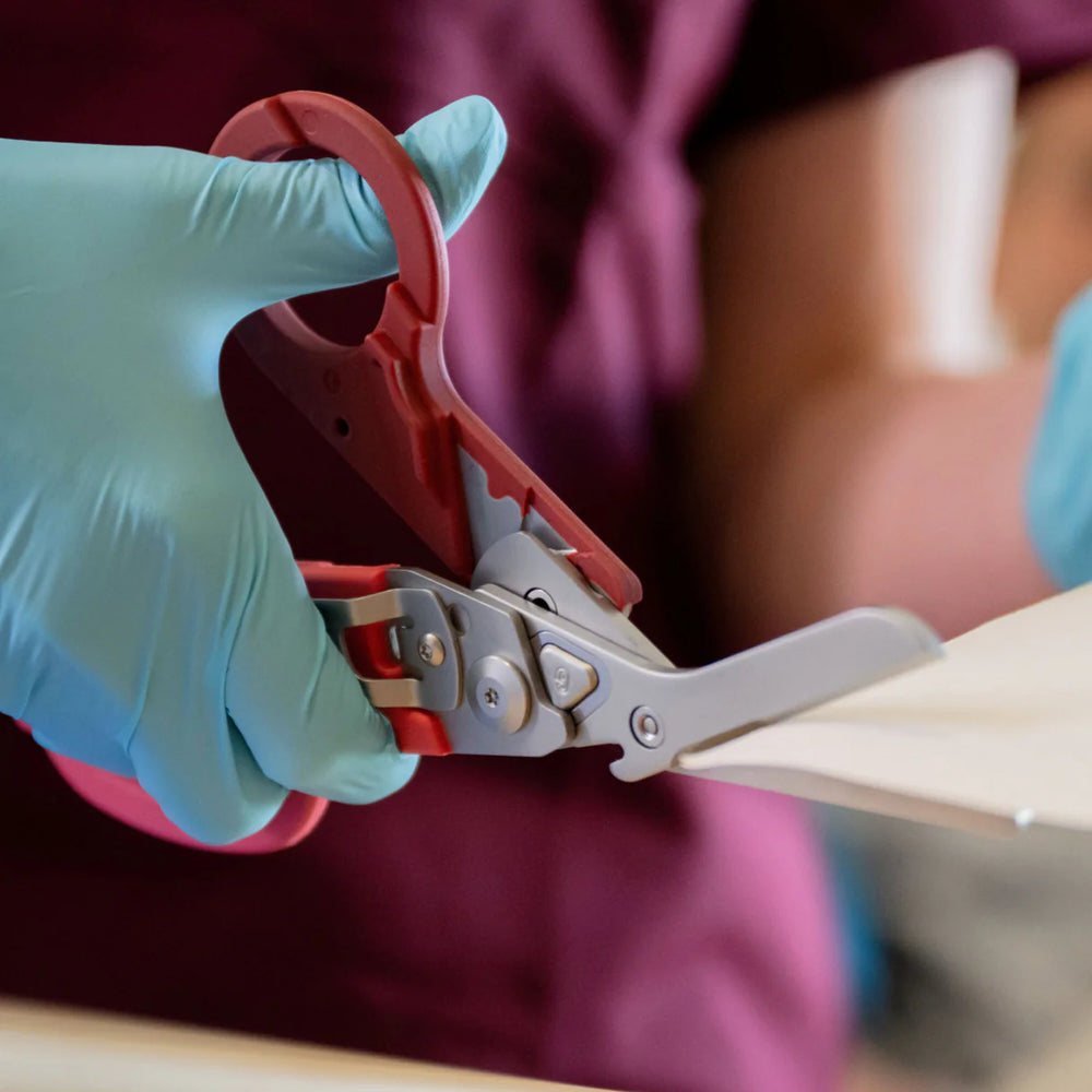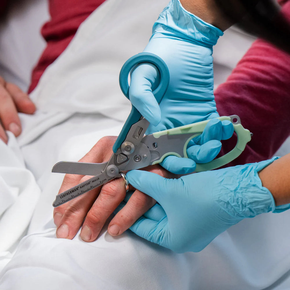 Designed with special features for cutting clothing, they stop fabrics from slipping while you cut. Other features include a ruler, ring cutter, strap cutter, carbide glass breaker and oxygen tank wrench for emergencies.