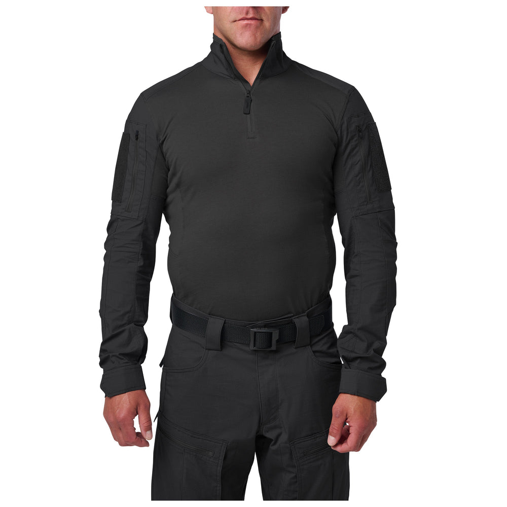 Lead from the front in the XTU Rapid Long Sleeve Shirt.5.11 partnered with top-tier teams from around the globe to develop the XTU line of tactical wear. XTU shirts and pants are designed and built to equip operators with the most functional, rugged and comfortable uniforms available. The hybrid construction of the XTU Rapid Long Sleeve Shirt provides versatility and speed. No Melt No Drip stretch fabric construction keeps you moving and cool under pressure. This shirt’s upper shoulders and sleeves are made from 58-percent cotton and 39-percent nylon Cordura® with elastane ripstop for staying power under heavy loads. A Teflon™ coating on the shoulders and sleeves protects from spills and stains. The lower body features 60-percent cotton and 40-percent Nylon 66 Cordura® jersey enhanced with a sweat-wicking, odor-destroying finish. The knit fabric, underarm gussets, adjustable cuffs and quarter-zip design help you maintain comfort across quickly changing conditions. Flat-lock seams prevent chafing, while reinforced elbows and bar tacking at stress points withstand frontline wear and tear. Dual sleeve pockets with loop patches at the biceps offer carry options for electronics and more. The XTU Rapid Long Sleeve Shirt will help you stay in the fight.