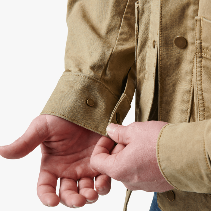 Selecting the right utility jacket has always been a headache-until now. 5.11's unlined, lightweight Rosser Jacket is constructed from 97% cotton and 3% elastance canvas for ruggedness and freedom of movement. Trimmed with a fold-down collar and adjustable snap cuffs, this all-purpose jacket features an enzyme wash for long-lasting style. A center front RAPIDraw snap placket provides quick access to a CCW. Other EDC essentials are always at hand thanks to the top-entry double chest pocket, top-entry patch pockets with snap closures, and an internal zippered stash pocket. Convenient side-entry hand pockets are a cool-weather bonus. A perfect grab-n-go outer layer, the Rosser Jacket pairs well with 5.11 Defender-Flex Jeans.