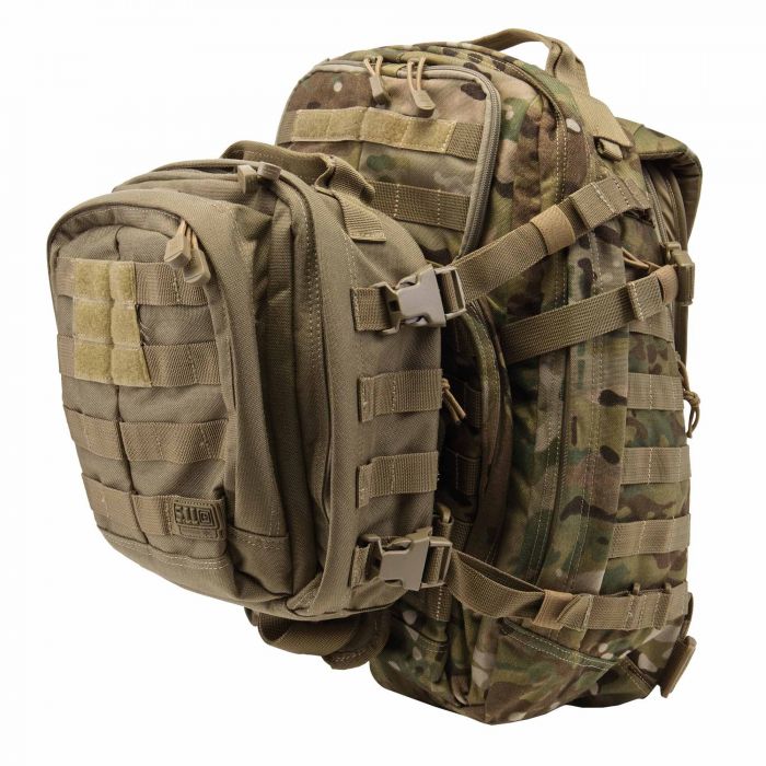 Versatile 4-piece strap system for attaching 5.11 Tactical® RUSH™ MOAB™ bags to 5.11 Tactical’s other bags with web platforms.
