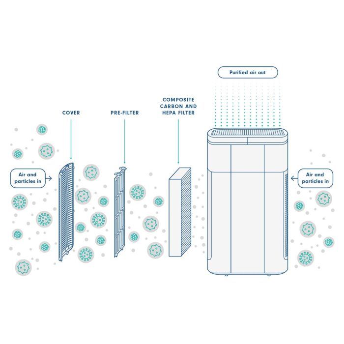 - Dual fans and sealed brushless motors provide exceptionally high clean air delivery rate (CADR) of up to 600m 3/h