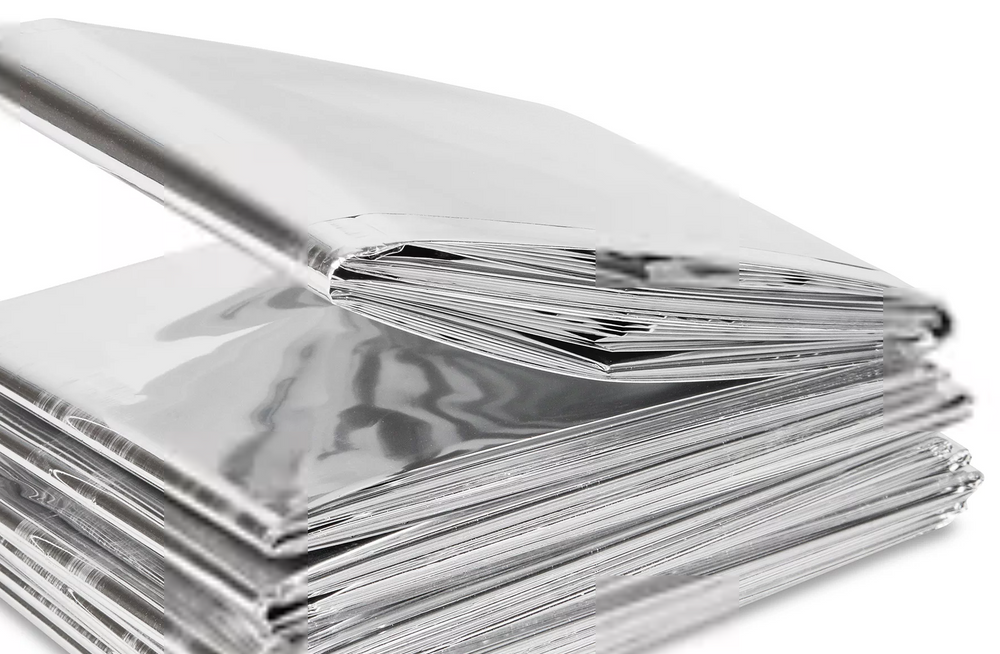 Space Foil Rescue Blanket, designed to retain the body heat for victims in shock.