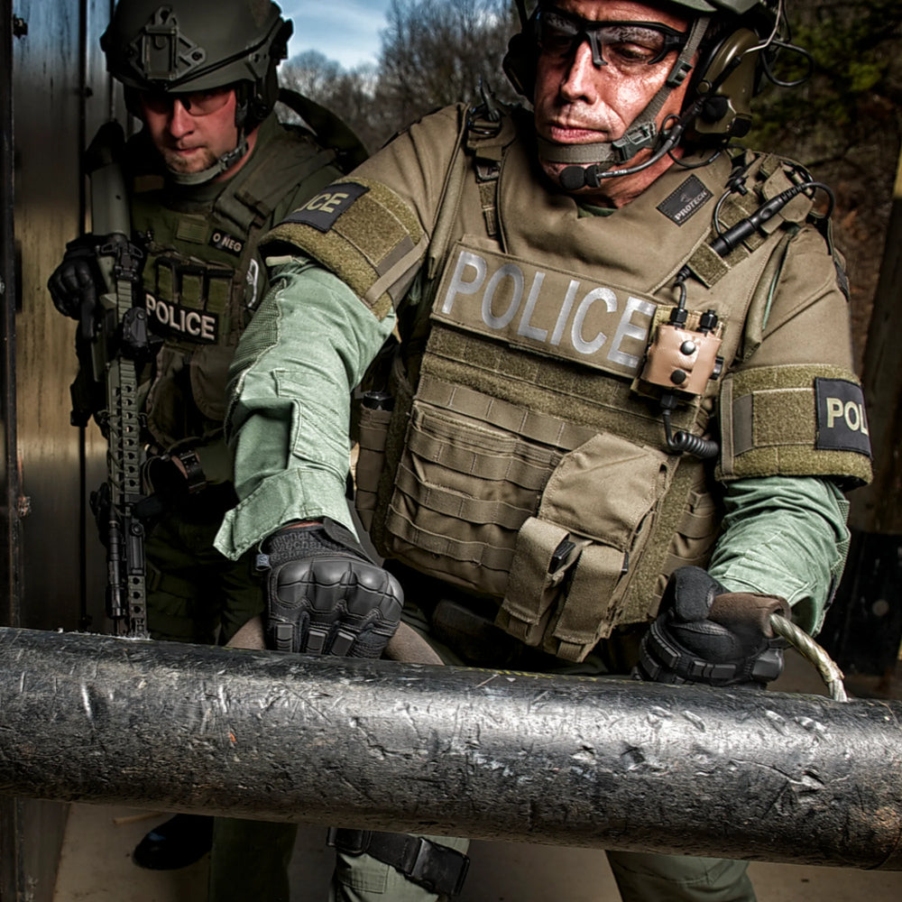 The Breacher is a flame-resistant tactical glove designed to protect the hands of military and SWAT team members during forcible entry and high-risk operations. A one-piece knuckle guard molded with dense Thermoplastic Rubber protects the back of your hand and D3O® palm padding absorbs impact to reduce hand fatigue. Mil-spec FR Nomex® and FR goatskin leather shield your hands against heat and flame exposure in the field.