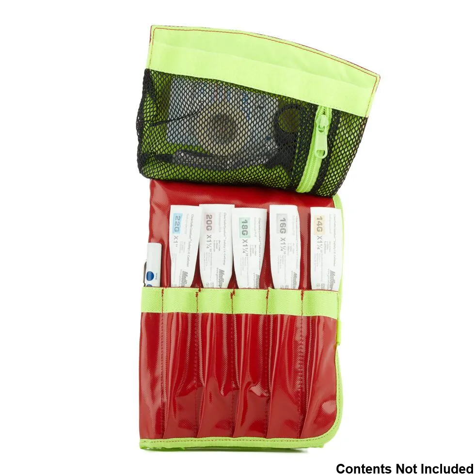 The StatPacks G3+ First Aid Circulatory Kit features a foam lined, roll style design helps keep IV therapies organised and at your fingertips. Drip sets, IV bag(s), catheters, needles and Start Kits™ are neatly arranged for fast access. It doubles as a pressure bag for rapid fluid infusion. Holds everything you need for a quick IV setup in one convenient kit. The I.V. Kit makes it easy to share on multi victim accident scenes. This is a perfect accessory EMS I.V. bag for any StatPacks® main packs.